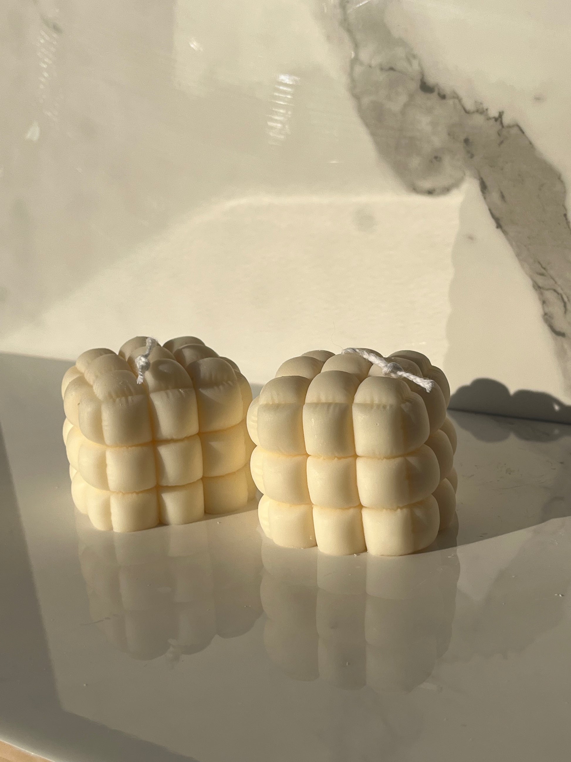 Since candles are hand poured, slight imperfections and variations of color may appear. They may also come with "frosting", which are small white marks. This occurs naturally with soy wax.